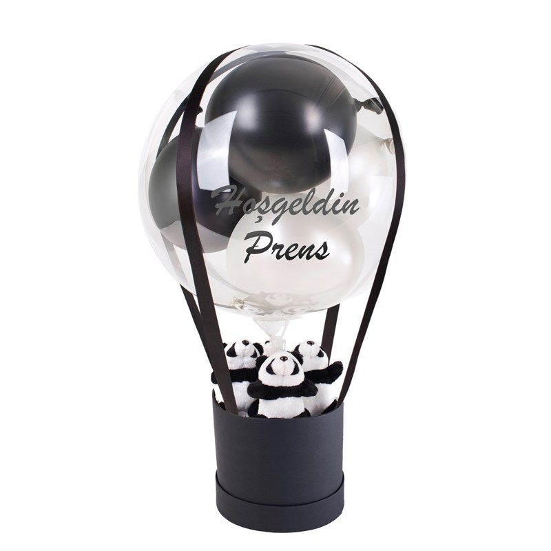Siyah Beyaz Peluşlu Kişiselleştirilebilir Siyah Balon Kutusu