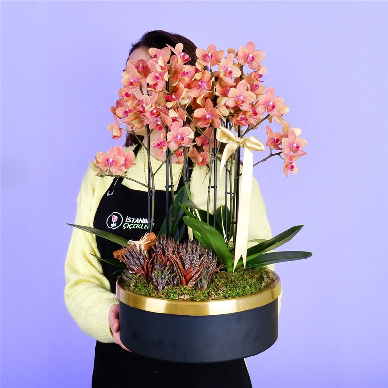 Canlı turuncu orkide çiçekleri ile hazırlanmış bu premium aranjman, hem şık hem de enerjik bir hediye seçeneği sunar. Zarif yapısı ve dikkat çekici renkleriyle sevdiklerinize mutluluk ve neşe dağıtır. Modern tasarımı sayesinde ev ve ofis dekorasyonunda da fark yaratır. Bu premium turuncu orkide aranjmanı, doğum günü, özel günler için mükemmel bir tercihtir. Sepetinize ekleyin ve sevdiklerinize unutulmaz bir sürpriz yapın! İstanbul Çiçekleri Premium Koleksiyonu tarafından özenle hazırlanan bu özel aranjman, sadece bir çiçek değil, zarafet, estetik ve duygunun birleştiği bir sanat eseridir.