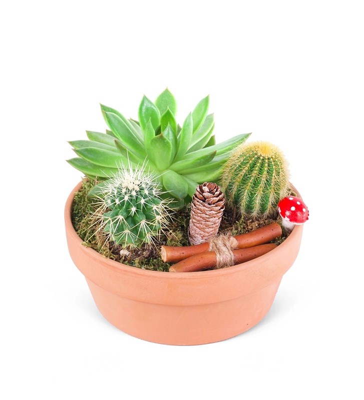 Ürün boyutu 10-15 cm aralığındadır Sukulent ve kaktüs bitkilerinin doğal uyumuyla hazırlanan bu özel aranjman, modern saksı tasarımıyla yaşam alanlarınıza şıklık katar. Dayanıklı yapıları sayesinde uzun süre canlı kalan sukulent ve kaktüsler, hem dekoratif bir görünüm sunar hem de bakımı kolay bitkiler olarak tercih edilir. Teraryum havası veren bu aranjman, ev ve ofis dekorasyonu için ideal olduğu gibi, sevdiklerinize hediye edebileceğiniz estetik bir seçenektir.