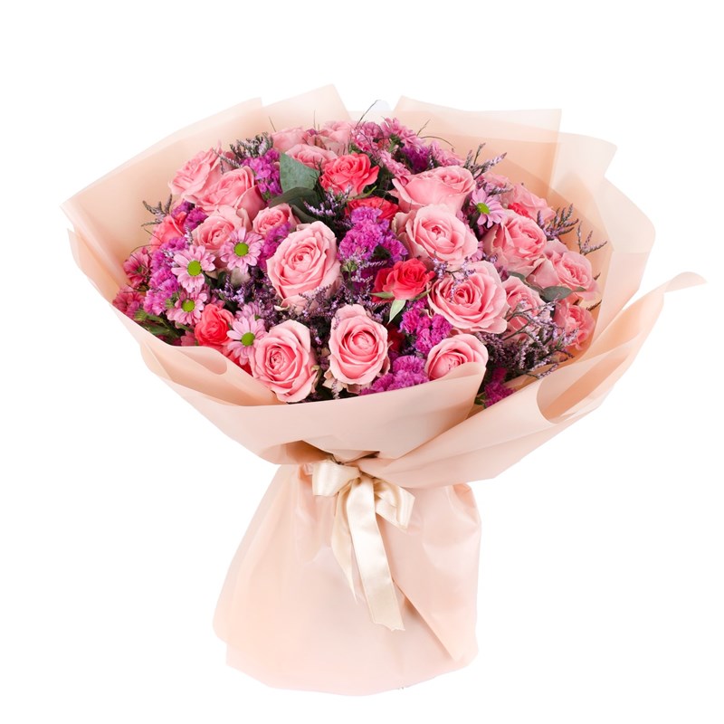 Ürünün boyutu 45-50 cm aralığındadır. Pink Whisper Buketi, zarif ve romantik bir dokunuşla kalpleri fethediyor! Bu büyüleyici aranjman, toz pembe tonlarının yumuşaklığını ve zarafetini en güzel şekilde yansıtıyor. Pink Whisper Buketi, duygularınızı en zarif şekilde ifade etmek, özel bir anı kutlamak ya da sevdiklerinize unutulmaz bir hediye vermek için mükemmel bir seçim. Bu buket, her detayıyla hem gözleri hem de kalpleri büyüleyecek, adeta bir masal gibi sizi saracak! Buketlerin bakımında püf noktalar; * 2 günde bir suyunun değişmesi gerekir. * Her su değişiminde bitkinin alttan kökleri 1 cm kadar kesilmelidir. * Çiçeklerin suyunun devamlı berrak olmasına dikkat edilmesi tavsiye edilir.
