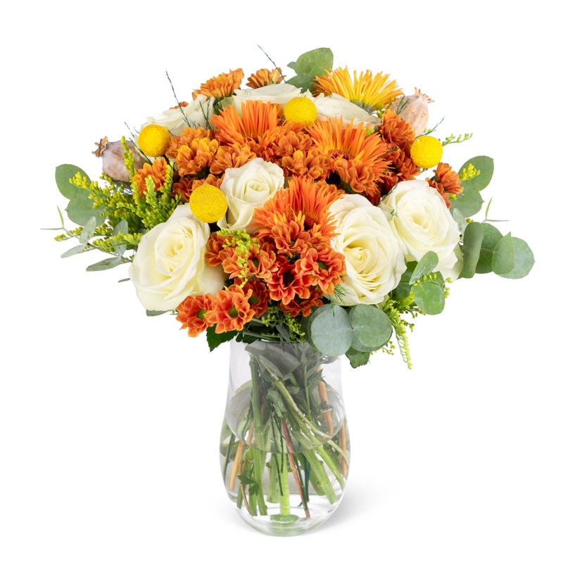 Ürünün boyutu ortalama 40-50 cm arasındadır Turuncu ve beyaz aranjmanı, sıcaklık, zarafet ve tazelik arasında mükemmel bir denge kurar. Turuncu, enerji, canlılık ve mutluluğu simgeler. Aynı zamanda cesaret, tutku ve pozitif düşünceyi ifade eder. Turuncu çiçekler, ortamı neşeyle doldurur ve kişisel bağları güçlendirmek için harika bir seçimdir. Beyaz ise saflık, masumiyet ve dinginlik anlamına gelir. Beyaz çiçekler, genellikle yeni başlangıçları, sadakati ve saygıyı temsil eder. Beyazın zarafeti, turuncunun sıcaklığıyla birleşerek denge yaratır ve huzurlu bir atmosfer oluşturur. Turuncu ve beyaz renklerin birleşimi, hem görsel olarak estetik hem de anlam olarak derinliklidir. Bu aranjman, sevdiklerinize duyduğunuz minnettarlığı, sevgiyi ve pozitif duyguları zarif bir şekilde iletmek için mükemmel bir seçimdir. Hem şıklık hem de anlam taşıyan bu renk kombinasyonu, herhangi bir ortamda ferahlatıcı ve etkileyici bir etki yaratır. Cam Aranjman Bakımı Hakkında Bilgilendirme; -Günlük bakımı için alt dallarının 1 cm olacak şekilde kesilmesi gerekir. -Vazoda bulunan suyun berrak olması gerekir. -2 günde bir suyunun değişmesi gerekir. -Ürünün serin yerde muhafaza edilmesi gerekir. -Solmuş veya bozulmaya başlayan ürünün yapraklarının temizlenmesi gerekir.