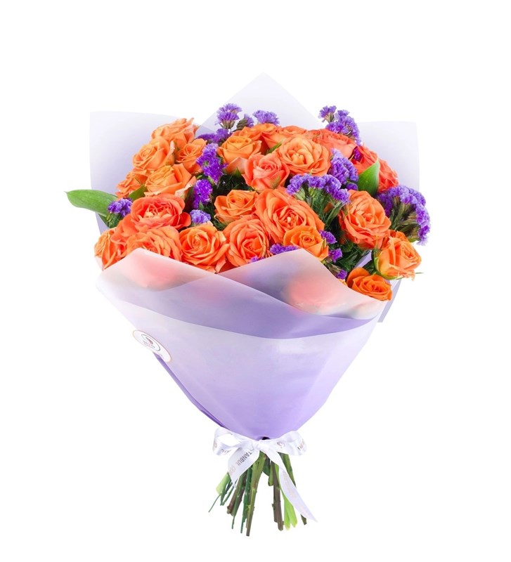Canlı turuncu güller ile mor statis çiçeklerinin göz alıcı uyumuyla hazırlanan bu zarif buket, sevdiklerinize enerji ve mutluluk taşımanın en renkli yollarından biridir. İstanbul Çiçekleri tarafından özenle hazırlanan bu canlı buket, sevdiklerinize pozitif duygular ve içten bir tebessüm armağan etmenin en renkli yoludur. Bu özel buketin tazeliğini uzun süre koruyabilmesi için birkaç basit bakım adımına dikkat etmeniz yeterlidir. Öncelikle buketi ambalajından çıkararak çiçeklerin saplarını temiz ve keskin bir makas yardımıyla çapraz şekilde 1-2 cm kesin. Ardından çiçekleri temiz suyla doldurulmuş bir vazoya yerleştirin. Vazo suyu iki günde bir mutlaka değiştirilmelidir. Her su değişiminde sap uçlarından bir miktar daha kesilmesi, çiçeklerin suyu daha iyi almasını sağlar. Buketi doğrudan güneş ışığına maruz bırakmaktan kaçının; serin, rüzgarsız ve aydınlık bir ortamda muhafaza etmek ömrünü uzatacaktır.