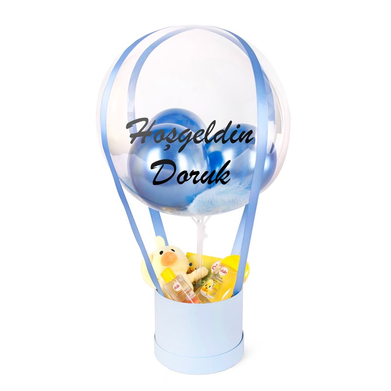 Kişiye özel balon kutularımıza isteğe göre sizlerin istediği şekilde yazı yazılmaktadır. Ürün boyutu Kutu Ölçüleri 15x15 cm Yükseklik 60 cm Ürün içeriği 1 Adet Peluş ayıcık 1 Adet Bebek yağı 1 Adet Şampuan 1 Adet Sabun