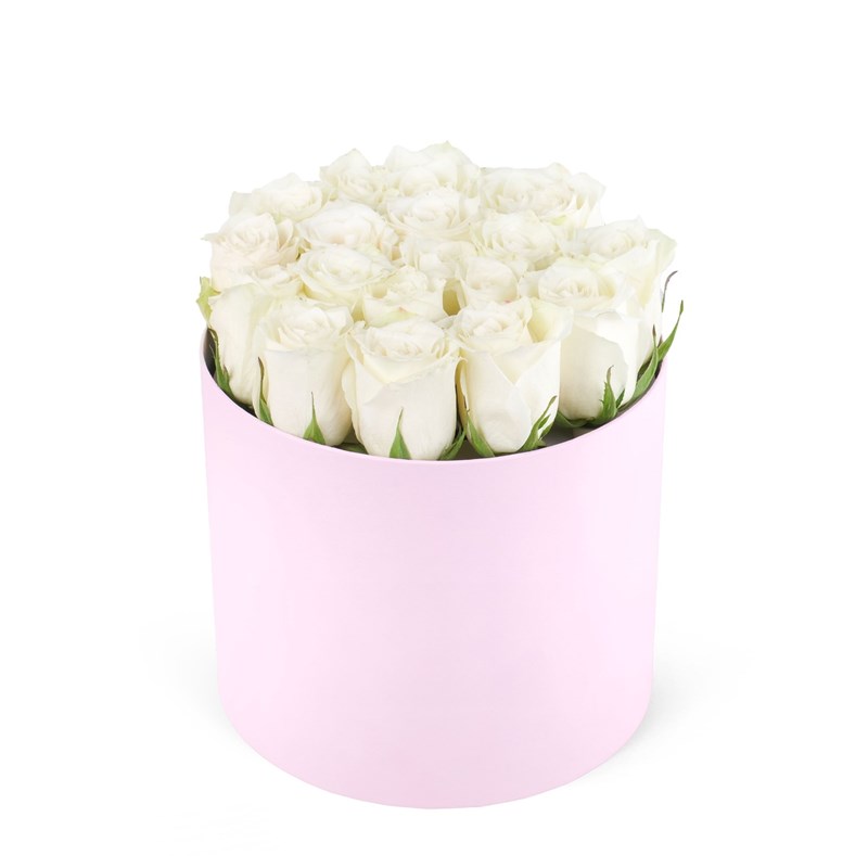 Kutuda 19 adet Beyaz gül bulunmaktadır. Kutu ebatları çap-yükseklik: 21x23cm